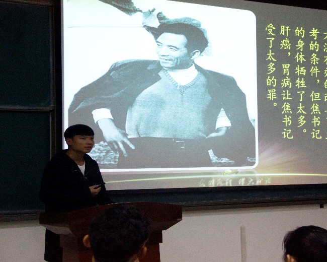 决赛在庄严肃穆的《国歌》声中开幕,宣讲人张振宇、薛凌堃等同学分别讲述了钱学森、焦裕禄、刘胡兰等故事的革命精神,用生动的语言、富有感染力的演说为同学们展示了优秀先辈们的成长经历和丰功伟绩,现场不时响起阵阵热烈的掌声。经过激烈的比拼,薛凌堃以《祖国啊,我终于回来了》荣获一等奖,徐金萍、韩泽等获得二三等奖。