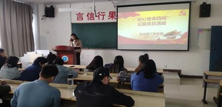活动前,全体党员对照自身情况认真填写了《党员初心使命四问表》。活动开始,各支部书记传达了学校党委关于开展党员“初心使命四问”主题党日活动的文件精神,着重强调了活动的要求和意义,要求全体党员认真交流学习。