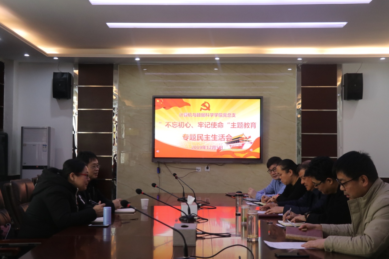 (通讯员 王春丽 周岸)为深入贯彻落实校党委关于“不忘初心、牢记使命”主题教育专题民主生活会的工作,12月5日下午,计算机与数据科学学院“不忘初心、牢记使命”主题教育专题民主生活会在计算机学院会议室举行,第七巡回指导组到会指导,计算机学院领导班子参加会议。会议由计算机与数据科学学院党总支书记李宝宏主持。