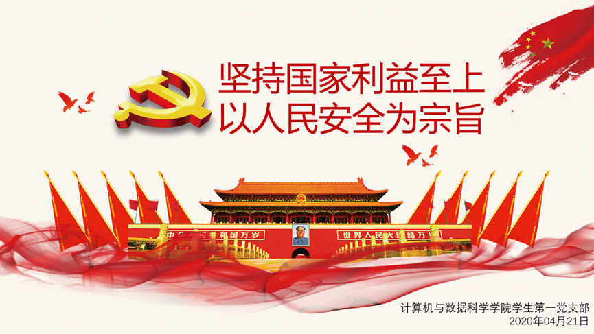 (通讯员 周岸 张皓哲)为进一步推动国家安全宣传教育工作深入开展,提高同学们的国家安全意识,自觉维护国家安全,计算机与数据科学学院学生第一党支部2020年4月21日开展“坚持国家利益至上,以人民安全为宗旨”党日活动。