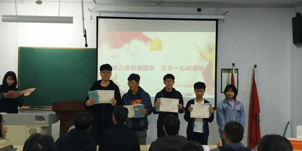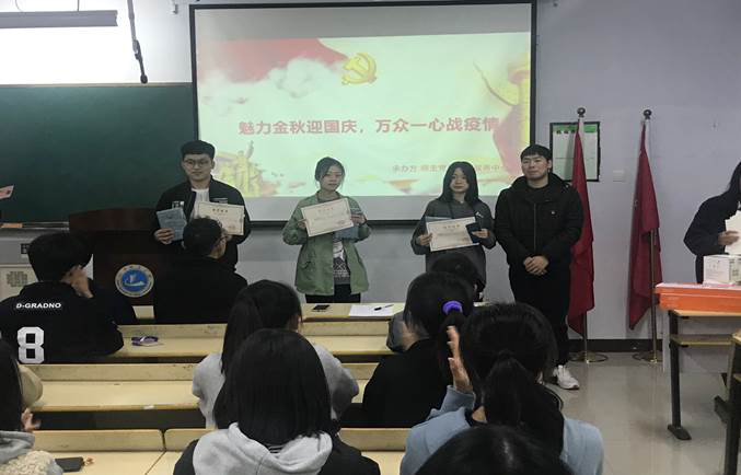 通过开展绘画、书法、摄影、征文等形式,展现在疫情防控期间参赛者面对国家民族危难时的思考和感悟。最终经过评比,一等奖获得者王慧、朱瑞迪、张子轩;二等奖获得者翦鑫帅等六名同学;三等奖获得者叶琼靖等九名同学,这些同学的作品表达了对祖国的感恩之情,歌颂了那些不怕牺牲、甘于奉献的最美逆行者和伟大祖国的建设者。王占洲老师向获奖选手颁发证书和纪念品,并鼓励他们百尺竿头更进一步,希望他们能够为学院、为学校做出巨大的贡献。