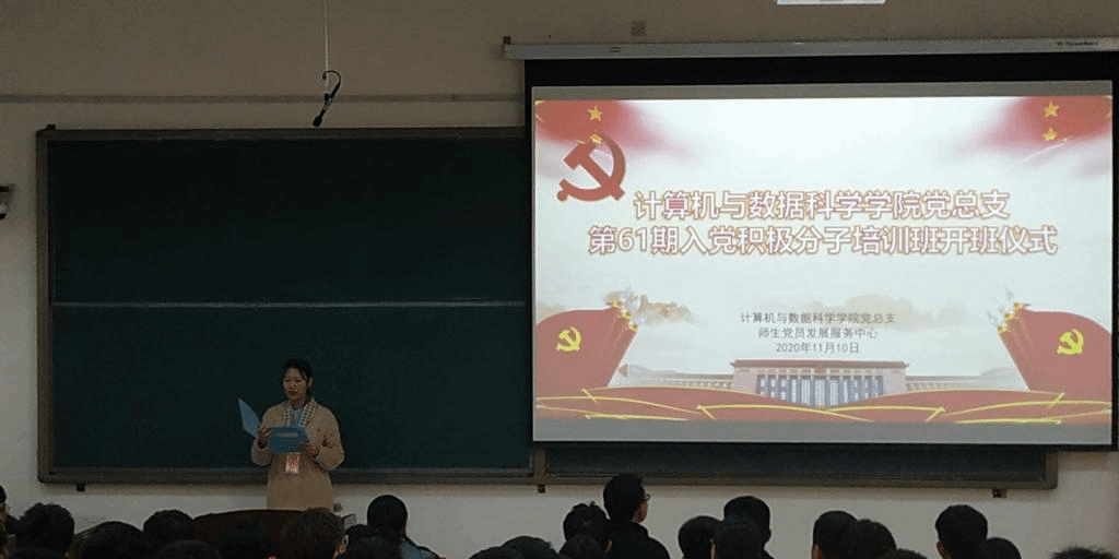 (通讯员 王占洲 周岸)根据《关于2020年下半年接收入党积极分子、确定入党积极分子和党员发展对象工作的通知》,计算机与数据科学学院党总支于2020年11月10日,在10号楼B205举行第61期入党积极分子培训班开班典礼,出席典礼的有计算机与数据科学学院党总支副书记张星,学生党支部书记王占洲、赵永锋、周岸。