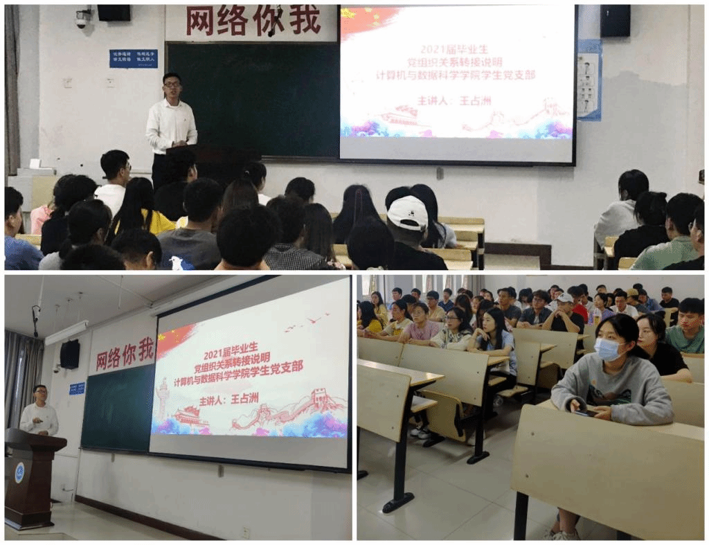 (通讯员 王占洲)为确保毕业生党组织关系转接工作稳定有序进行,6月3日晚上7点,计算机与数据科学学院师生党员发展服务中心于10#A414面向2021届毕业生讲解党组织关系转接相关事宜。转接会由计算机与数据科学学院兼职组织员、学生第一党支部书记王占洲主讲,我院2021届毕业生党员参加。