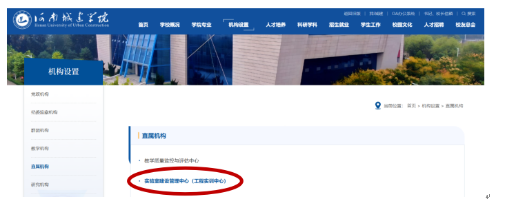 第二步,“机构设置”—— “直属机构”——“实验室建设管理中心(工程实训中心)”