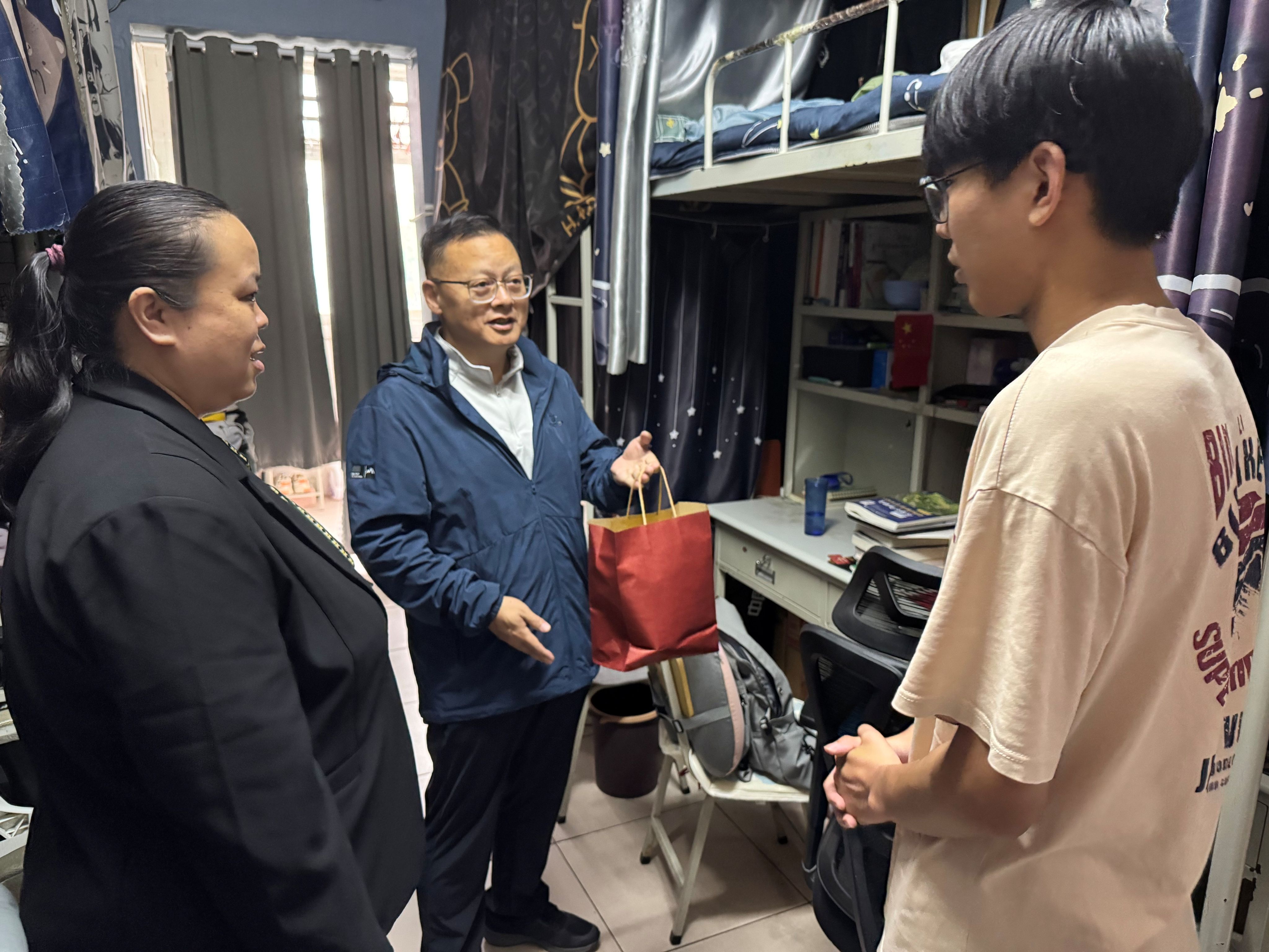 (通讯员 赵永锋)2025年10月6日,中秋佳节之际,计算机与数据科学学院党委书记米启超、副书记张星带领学工团队深入学生宿舍,对留校学习的困难学生进行了亲切慰问,将学院的深情关怀与节日的暖意传递给留校学子。