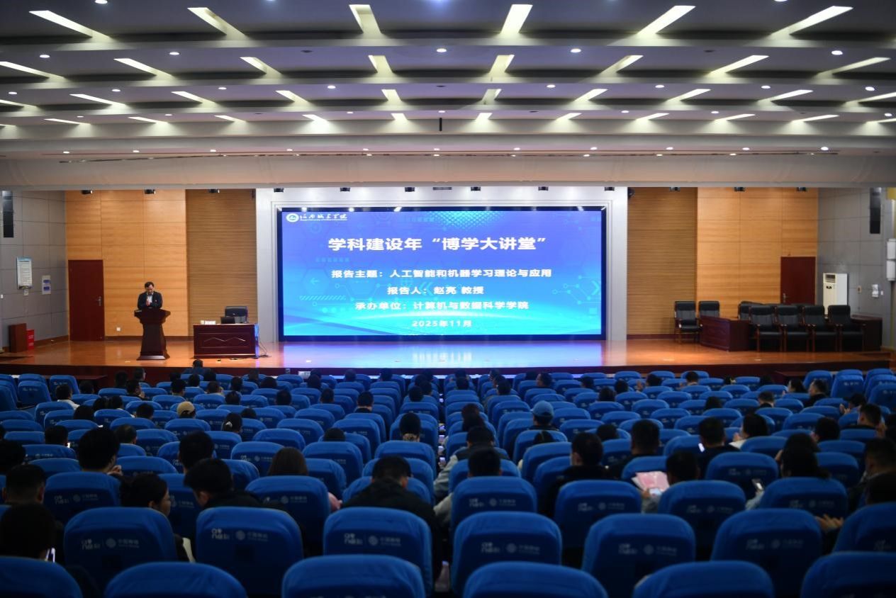 (通讯员 冯巧娟)2025年11月3日下午,河南城建学院“学科建设年”系列专题报告会在行政楼报告厅举办。国际知名学者、巴西圣保罗大学计算机和数学系正教授、系主任、博士生导师赵亮教授受邀,作题为“人工智能与机器学习的前沿理论与应用展望”的专题报告。副校长孙玉周主持报告会,学校职能部门主要领导、各学院骨干教师代表及计算机与数据科学学院师生齐聚现场。