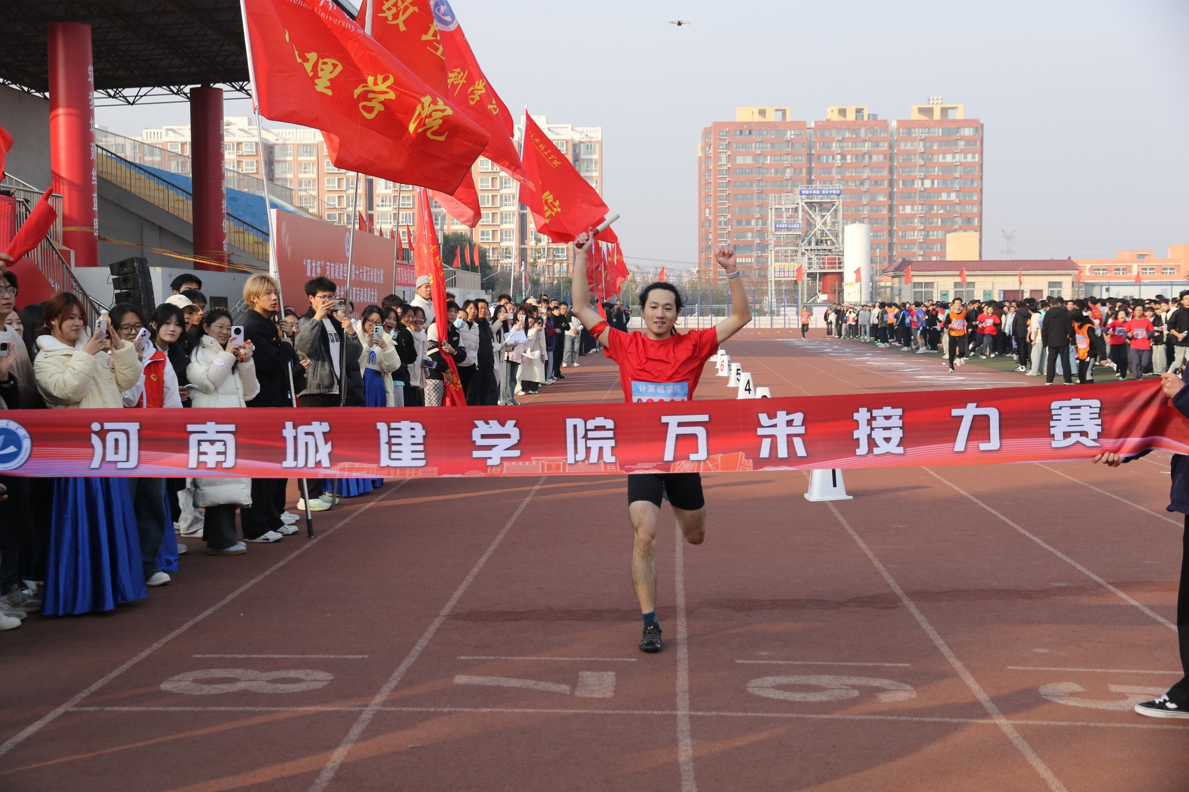 (通讯员 任恒)12月9日,计算机与数据科学学院在学校第十六届万米接力赛中勇夺冠军(成绩:56分37秒)。学院党委书记米启超、副书记张星、副院长苏靖枫莅临比赛现场,为运动员们加油助威,学院300余名学生代表现场观看比赛。