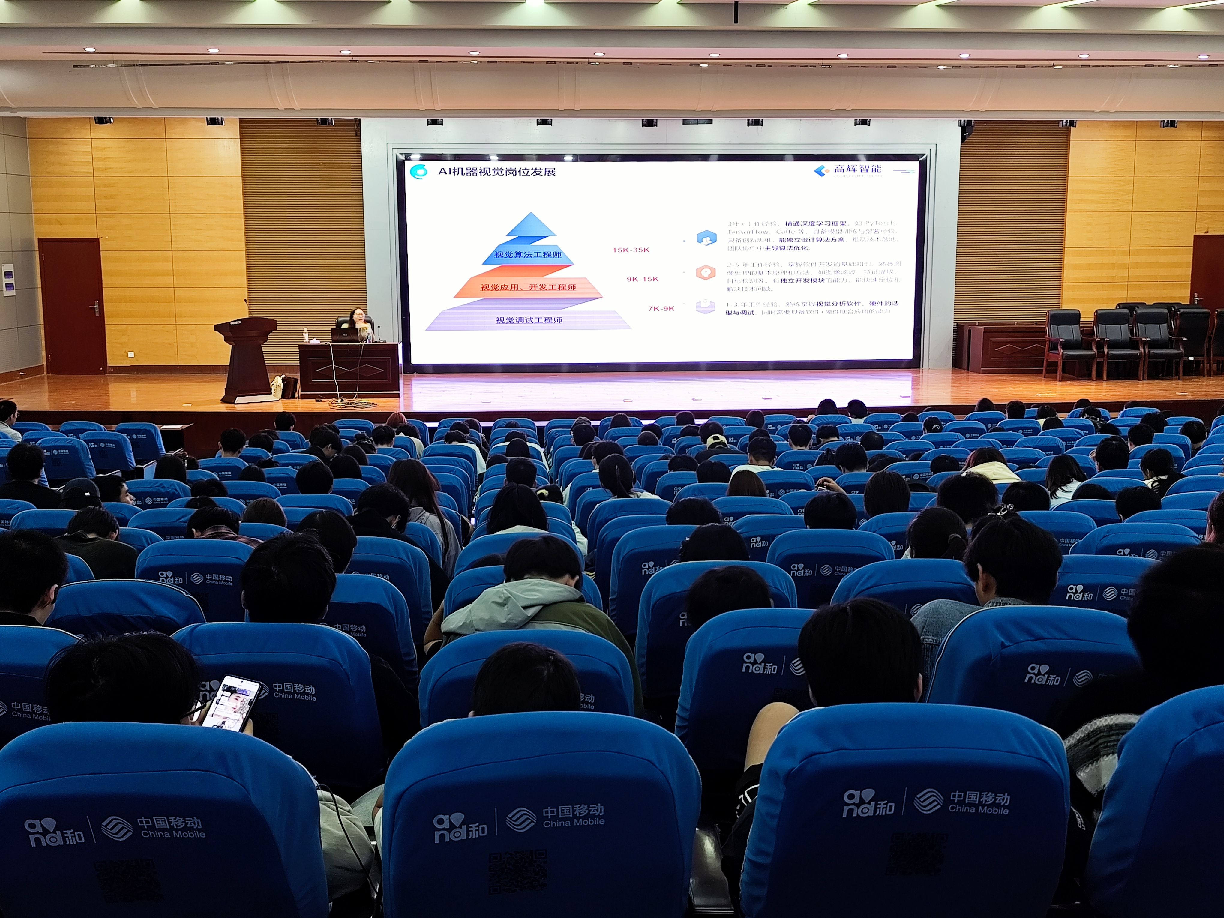 报告中,周玉洁结合智能制造质检、智慧交通识别等前沿案例,让同学们直观感受技术如何改变世界;同时引用行业权威数据,剖析市场规模增长态势,洞悉企业在算法开发、系统集成等领域的用人需求与缺口,并特别指出计算机类专业同学在编程、算法理解方面的优势,为同学们指明竞争方向。她还建议大家珍惜学习时光,提前掌握行业专业技能,紧跟发展趋势。