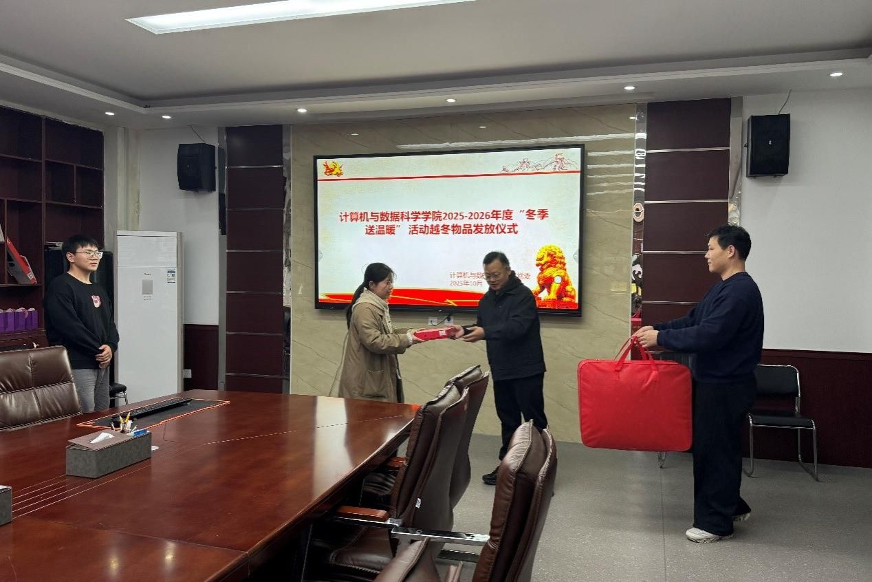 (通讯员 赵永锋)寒冬将至,温情先行。2025年10月29日,计算机与数据科学学院举办院举办"冬季送温暖"活动,党委书记米启超亲切慰问家庭经济困难学生,为他们送去棉被和保暖衣,让这个冬天充满温暖。