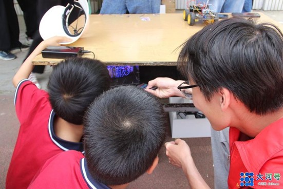 图为小朋友们体验自动避让小车
