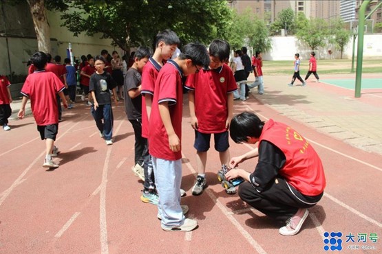 3.自动避障机器人演示:实践队员向学生们展示了一款搭载传感器的自动避障机器人,并详细解释了其工作原理。机器人在模拟障碍场地中灵活穿梭,有效向学生们展示了人工智能感知与决策的初级形态。