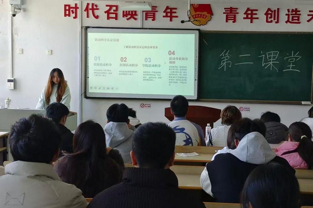 (通讯人王占洲)为充分发挥第二课堂在学生综合素质培养中的核心作用,有效破解同学们在积分积累与系统操作中存在的实际困惑,2025年11月29日,计算机与数据科学学院院团委在10号楼A507教室组织开展了第二课堂系统专项培训会。